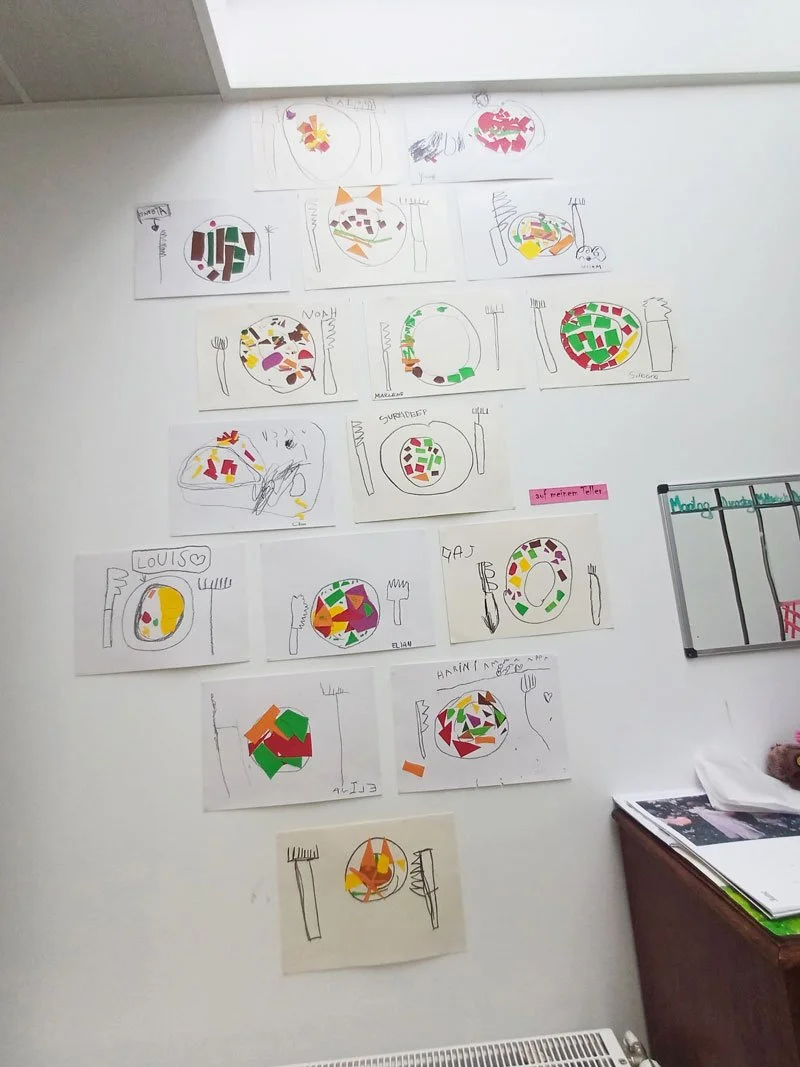 Jede Woche schaffen die Kinder unter der Anleitung des Künstlers Sylvain Merot eigene Kunstwerke, inspiriert von z.B. Pointillismus, Konstruktivismus (Piet Mondrian) oder Comics